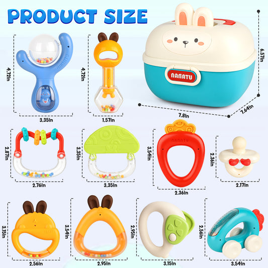UUSUOO 10Pcs Baby Rattles Toys for 0-6 Months,Baby Teething Toys with Storage Case,Infant Newborn Baby Toys for 6-12 Months,Birthday Gifts for Newborn Baby Boys Girls