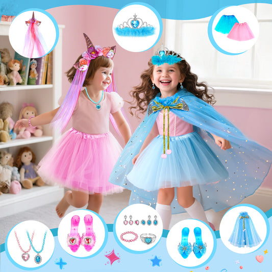 UUSUOO 19Pcs Princess Dress Up Toys,2 Sets Princess Toys for Girls 3-6 Years,Unicorn and Frozen Princess Pretend Play Toys Gift for Girls 3 4 5 6 + Years Old