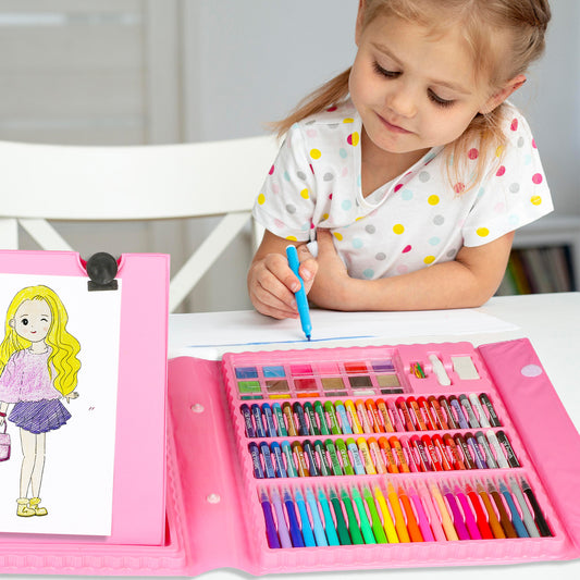 UUSUOO 208 PCS Art Set for Kids,Drawing Kits for Kids Age 8-12 with Double-Sided Drawing Board,Crayons, Paints, Colored Pencils, Arts and Crafts Christmas Gifts for Kids 3 4 5 +