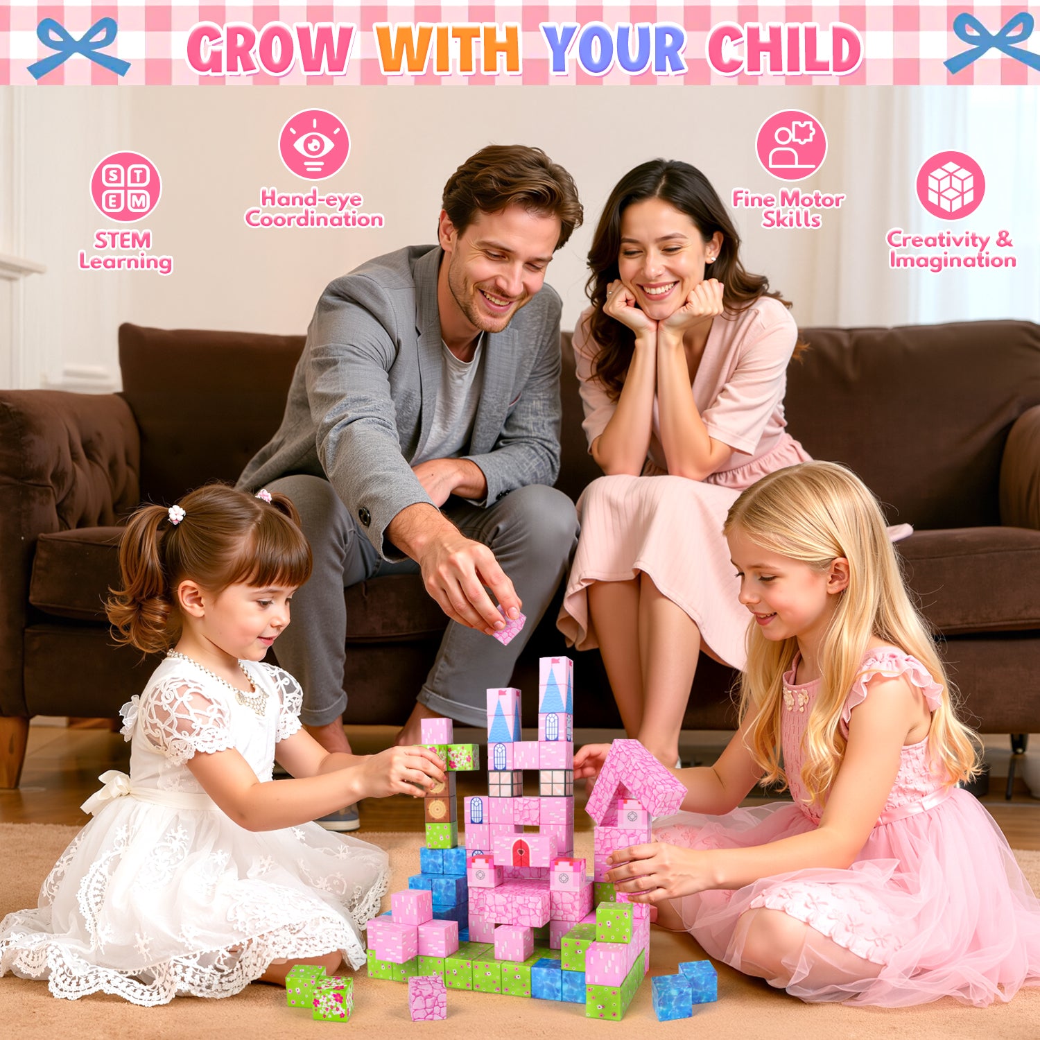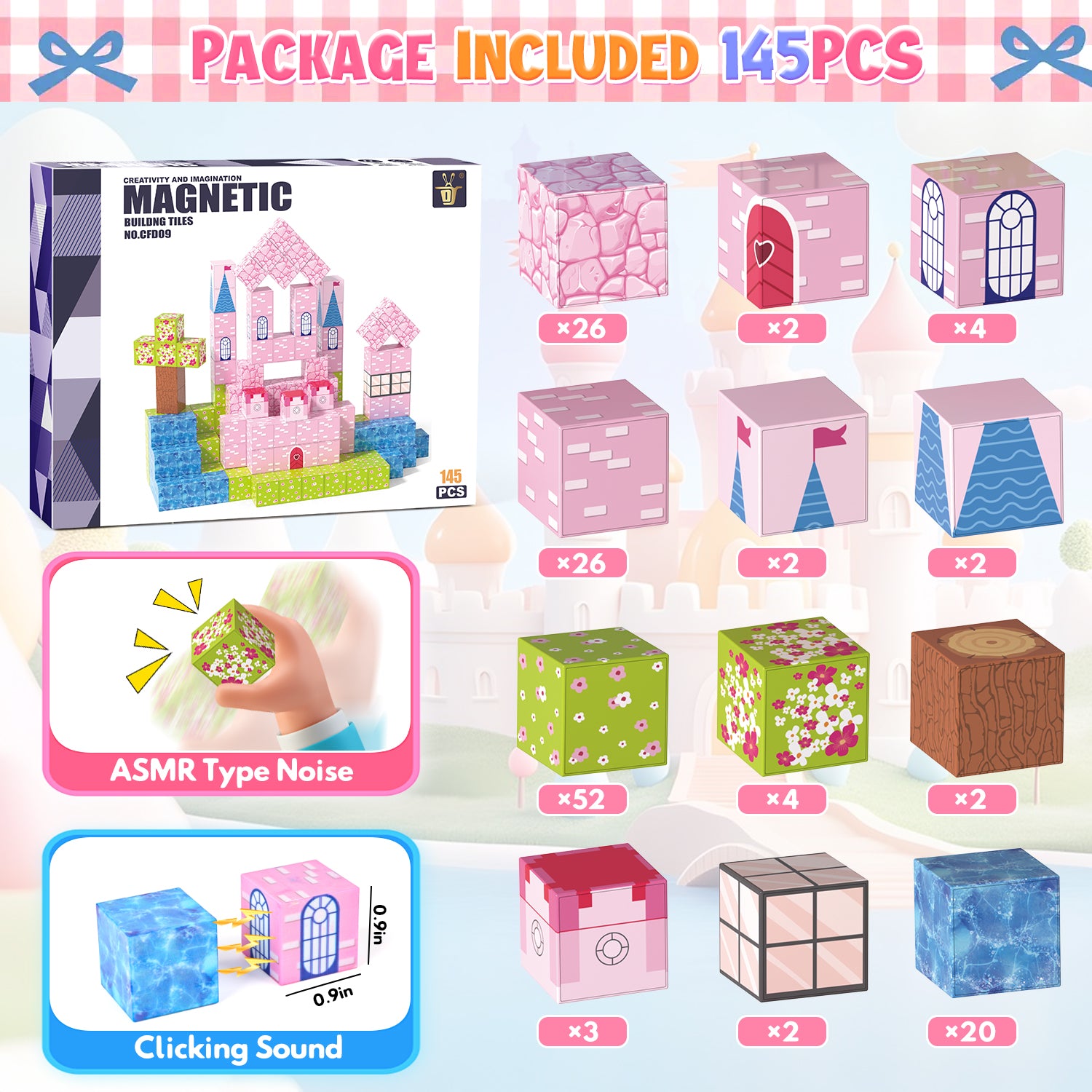 - đ°Â ă145PCS MAGNETIC CUBE - PRINCESS CASTLE WORLDă Watch your little builderâs imagination take off with 145 PCS 0.9 Inch Magnetic Blocks in 12 eye-catching colors! Designed for kids ages 3 and up, this set lets them stack, build, and create while sharpening their color recognition, spatial awareness, and problem-solving skills. More PCS mean bigger, bolder, and more creative buildsâendless fun awaits!