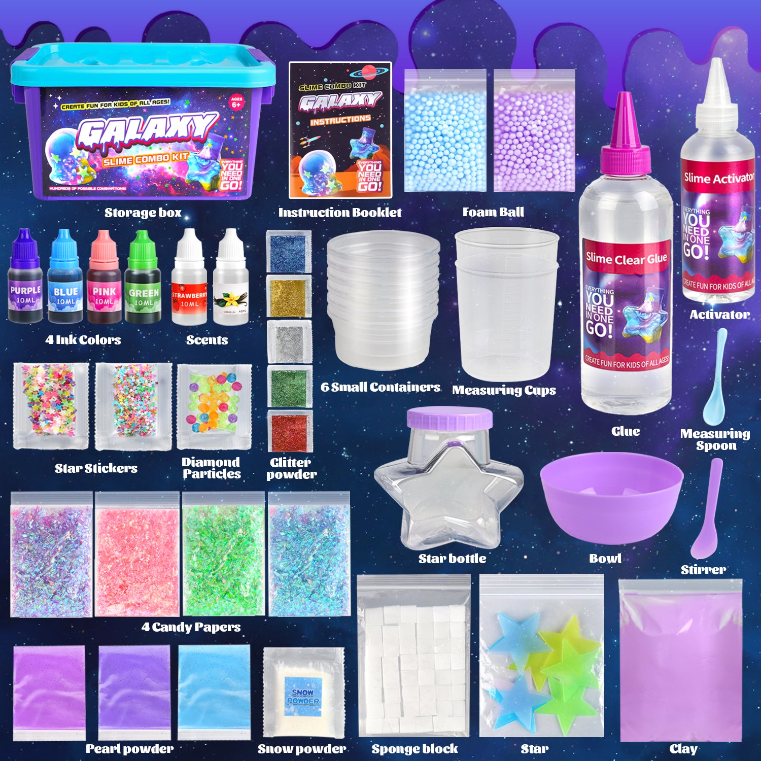 - đ« ăCOMPLETE GALAXY SLIME KITăUltimate slime making kit for girls featuring cosmic colors, glitter, and glow-in-the-dark elements. Perfect galaxy slime kits for girls ages 8-12 and boys, includes everything needed to create stunning galaxy-themed slimes with crunchy textures.