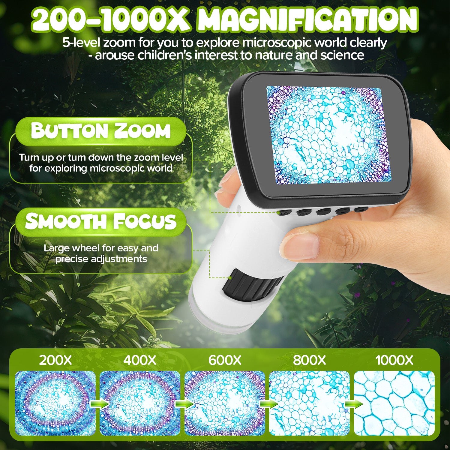 UUSUOO Microscope for Kids,200X-1000X Beginner STEM Kids Microscope with Video & Photo,Science Kits for Kids Age 5-7 8-12,Educational Toys Birthday Gift for Kids Age 5 6 7 8+