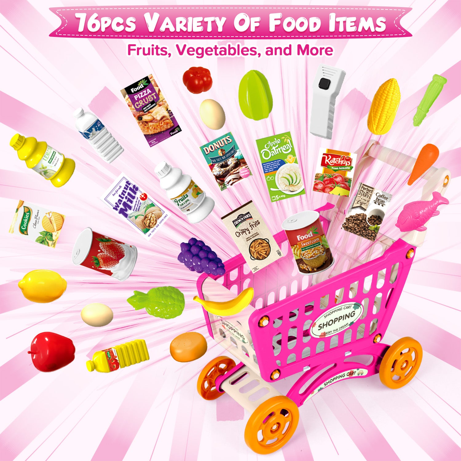 UUSUOO Supermarket Playset for Kids with Shopping Cart,76PCS Pretend Play Toys,Pretend Play Grocery Store Set with Play Food,Cash Register,Christmas & Birthday Gift for Kids 3 4 5 6 +