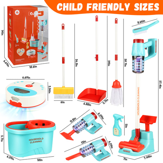 UUSUOO 13PCS Kids Cleaning Toy Sets,Kids Vacuum that Really Works with Light, Sound Effects,Kids Broom and Mop Set,Pretend Play Home Toddler Cleaning Set Toy Gifts for Boys & Girls Ages 3 4 5 6 7+