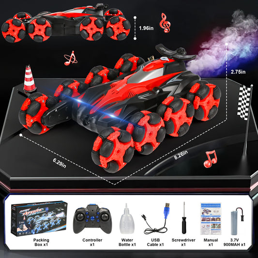 Remote Control Cars for Boys,8WD RC Stunt Car, 2.4 GHz 360°Rotating RC Drift Cars with Spray, Light & Sound, RC Cars for Boys Age 6-12 8-12 Birthday Gifts Toy , Red