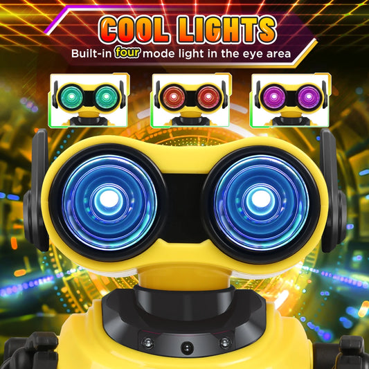 Kids RC Robot Toys, Interactive Smart Robot with Touch Sensor, Music, LED Eyes, Automatic Presentation Christmas Birthday Gifts for 3-8 Year Old Girls Boys, Yellow