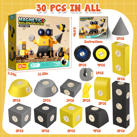 UUSUOO 30 PCS Magnetic Blocks,Magnetic Building Blocks for Kids Ages 4-8,Foam Magnetic Blocks,Montessori Toys,Preschool STEM Educational Sensory Magnet Toys Gifts for 1-3 3-6 Years Old Kids