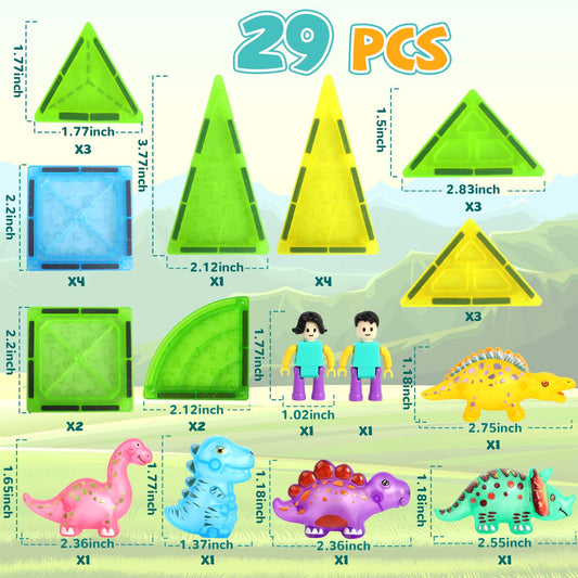 Dinosaur Magnetic Tiles,Animals Magnet Building Blocks Toys Dino World,3D STEM Educational Magnet Tiles for Kids Age 3 4 5 6 7 8(29PCS)