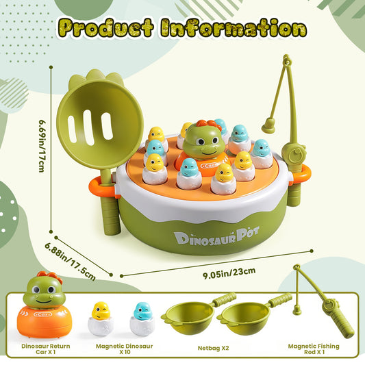 UUSUOO 4 IN 1 Dinosaur Board Games for Kids,Magnetic Fishing Turntable Rotating Music Dino Car Tic-Tac-Toe,Developmental Toys for 1 Year Old,Christmas Toys for Toddler Boys Girls 3-6