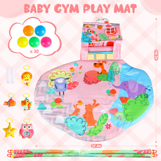 UUSUOO 2-in-1 Baby Play Mat,Tummy Time Mat With 5 Sensory Toys, 30 Balls,Baby Activity Gym Mat for Visual, Hearing, Sensory, Motor Development,Baby Toys Gifts for Toddler Infant 0-3-6-9-12 Month