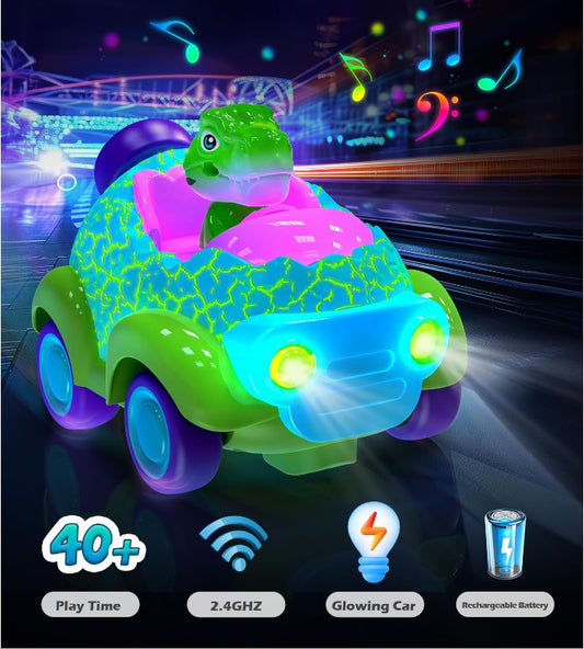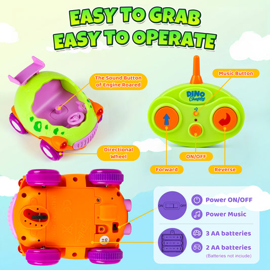 Dinosaur Remote Control Cars for Toddlers, 2 Pack RC Cars Dinosaur Toys for Kids, w/ LED Lights & Music, Toys for Boys and Girls 2 3 4 5 6 Years Christmas Gift