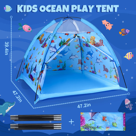 Marine World Kids Play Tent,Kids Play Tent Foldable Pop Up Kids Tent,Indoor Outdoor Party Undersea World Playhouse Tent Toy for Boys Girls-47*47 *39 (Blue)