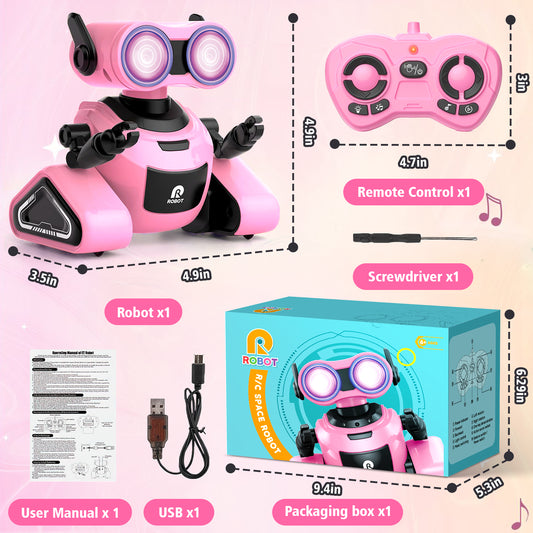 Robot Toys for Girls,Rechargeable Remote Control Robots, Toy Robot with Auto-Demonstration, Flexible Head & Arms, Dance Moves, Music, and Shining LED Eyes, Girls Toys Age4-6 (Pink)